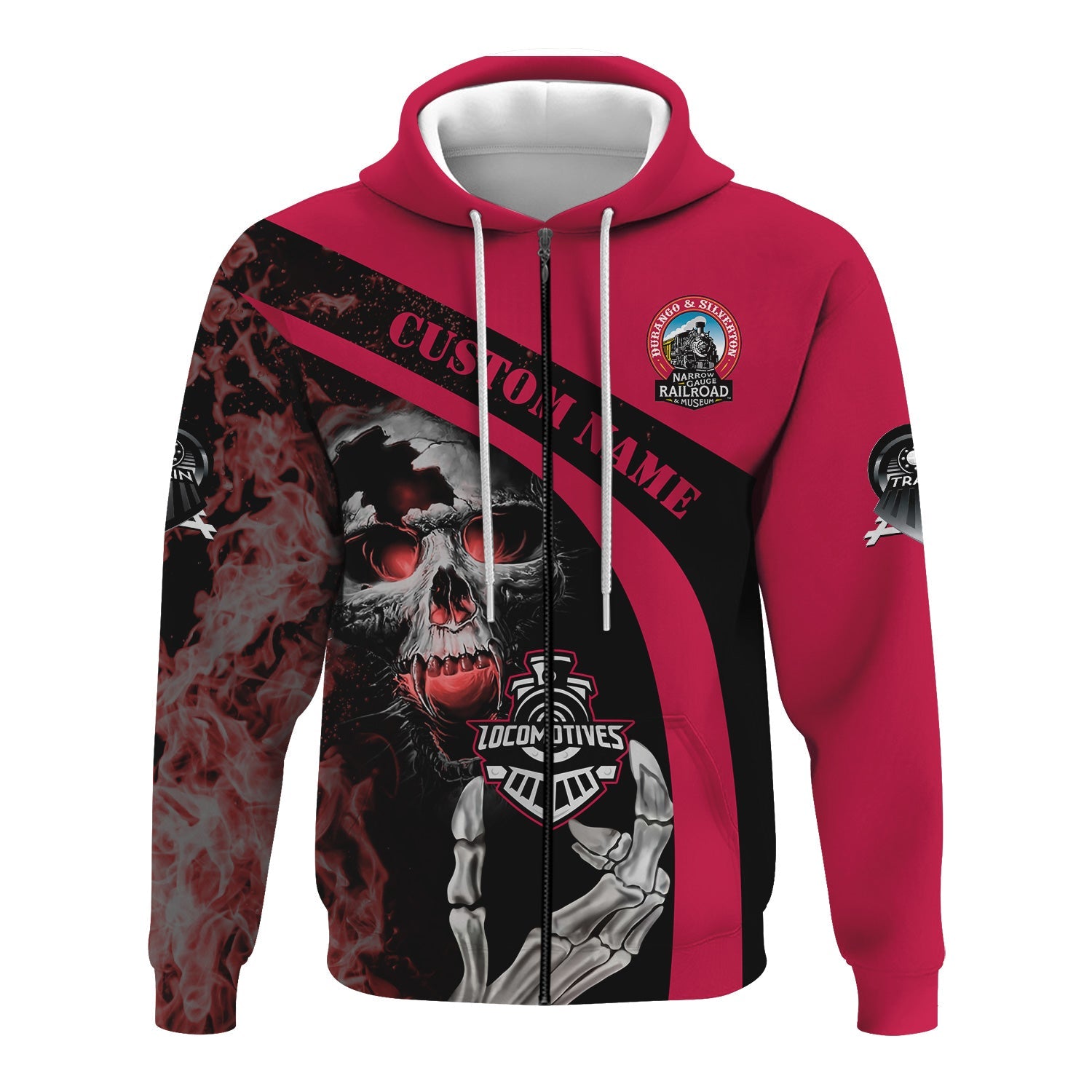 Railspirit Personalized Durango And Silverton Narrow Gauge Railroad Hoodie Flame Skull Design Train Zip Up Hoodie for Locomotive Fans