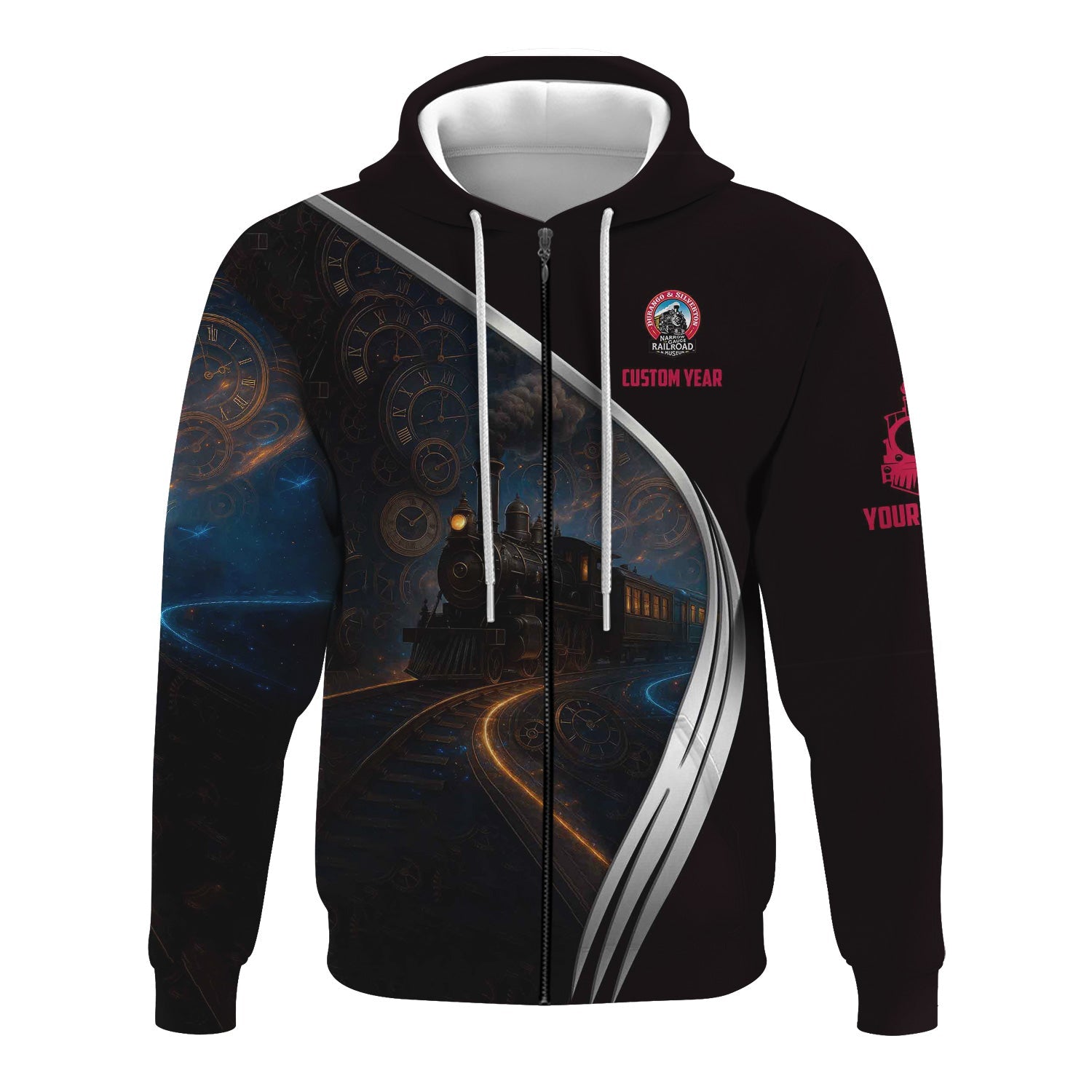 Railspirit Personalized Durango And Silverton Narrow Gauge Railroad Hoodie Steampunk Locomotive with Custom Year Train Zip Up Hoodie