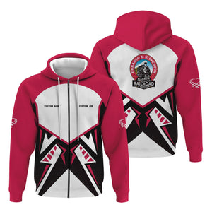 Railspirit Personalized Durango And Silverton Narrow Gauge Railroad Hoodie Vibriant Style with Custom Position Train Zip Up Hoodie