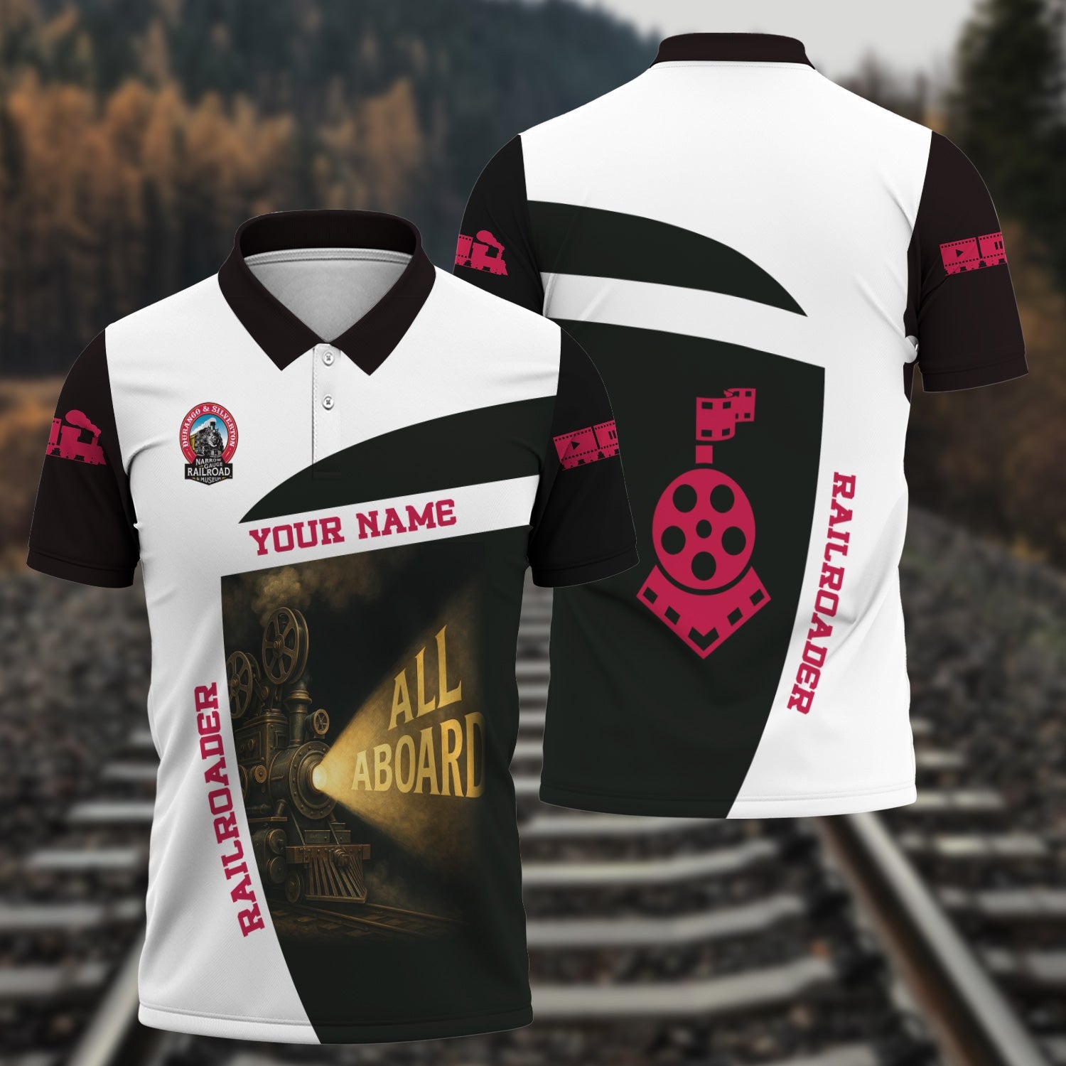 Railspirit Personalized Durango And Silverton Narrow Gauge Railroad Polo Shirt All Aboard Steam Train Movie Projector Style Shirt