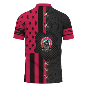 Railspirit Personalized Durango And Silverton Narrow Gauge Railroad Polo Shirt American Flag with Crack Effect Train Shirt