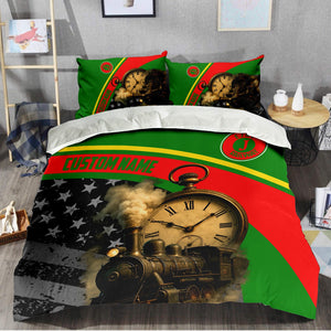 Railspirit Personalized Elgin Joliet And Eastern Railroad Bedding Set Classic Steam Engine With Retro Pocket Watch Bedding Set All Over Print