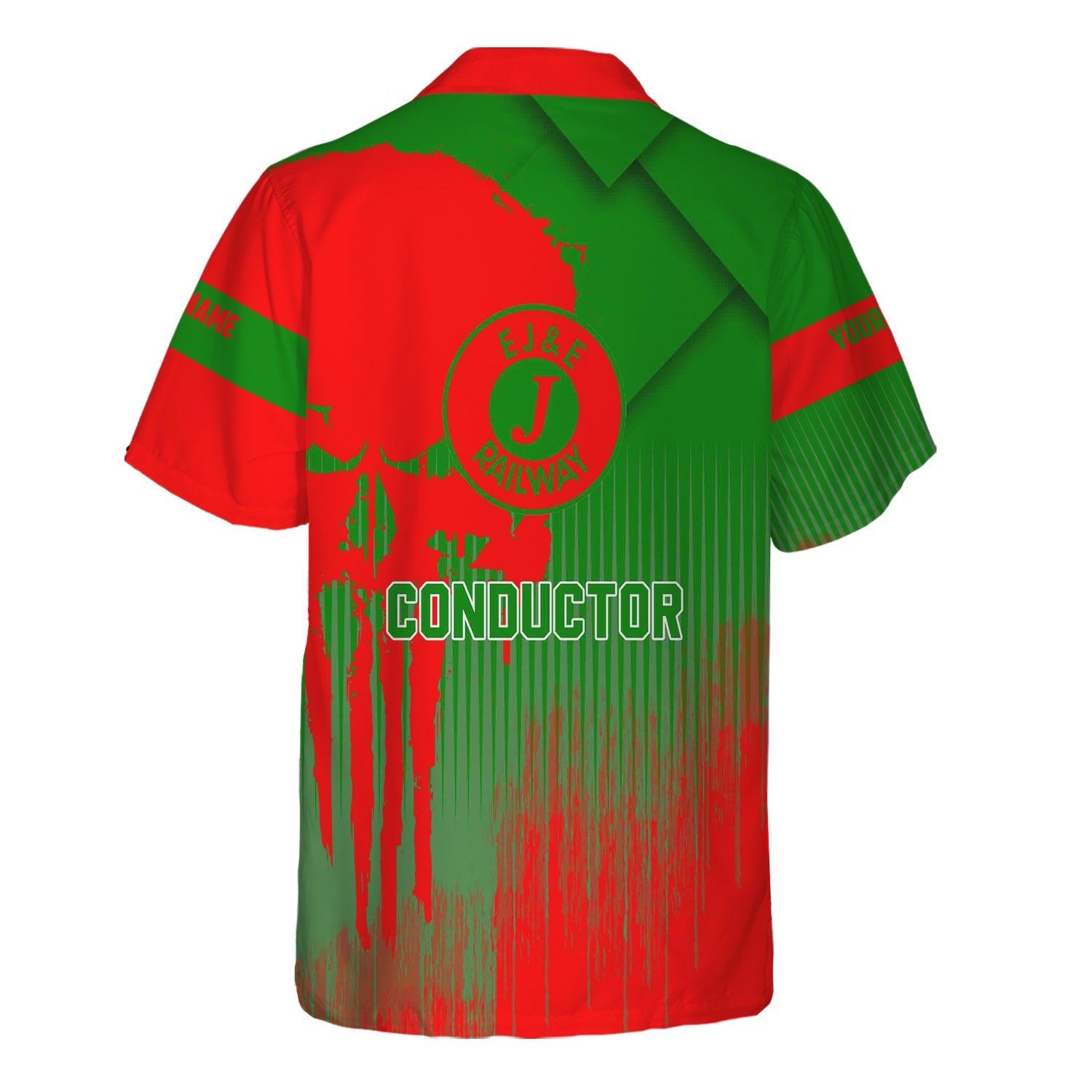 Railspirit Personalized Elgin Joliet And Eastern Railroad Hawaiian Shirt Skull Design with Custom Job Train Shirt for Trackhead Crew