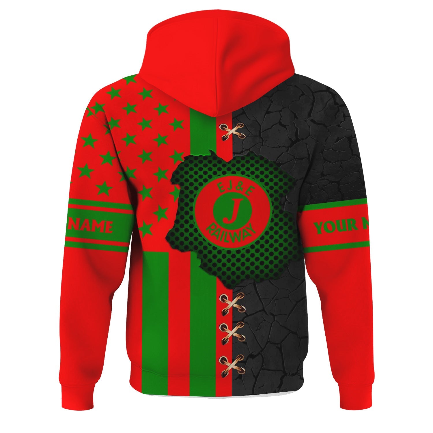 Railspirit Personalized Elgin Joliet And Eastern Railroad Hoodie American Flag with Crack Effect Train Zip Up Hoodie