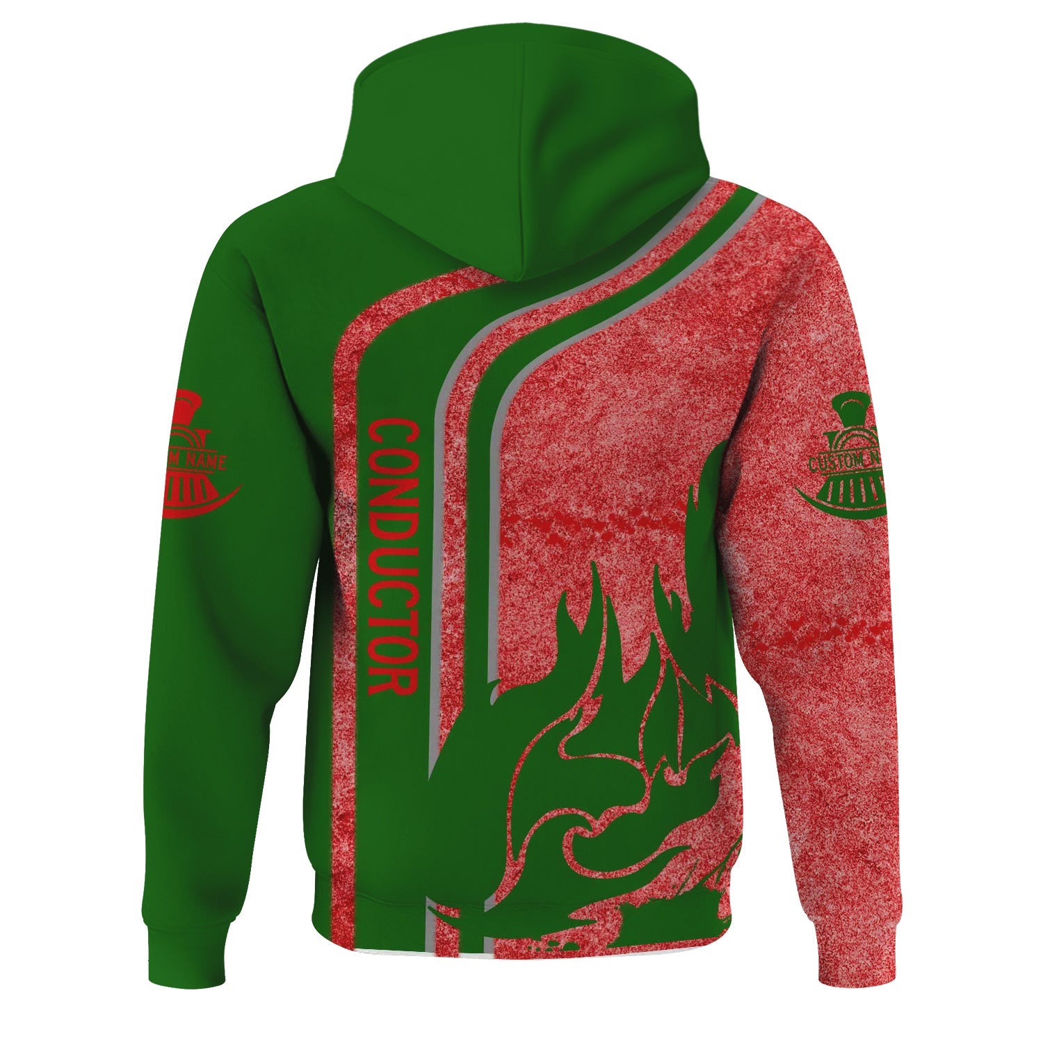 Railspirit Personalized Elgin Joliet And Eastern Railroad Hoodie Flame Design with Custom Job Position Train Zip Up Hoodie