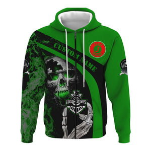 Railspirit Personalized Elgin Joliet And Eastern Railroad Hoodie Flame Skull Design Train Zip Up Hoodie for Locomotive Fans