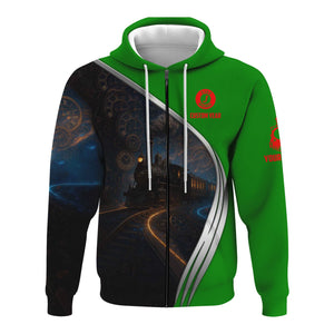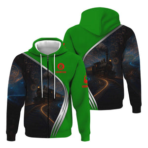 Railspirit Personalized Elgin Joliet And Eastern Railroad Hoodie Steampunk Locomotive with Custom Year Train Zip Up Hoodie