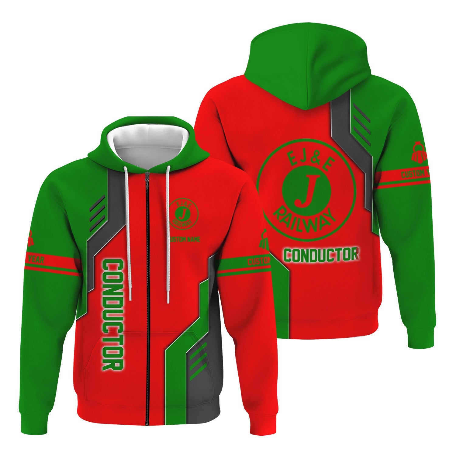 Railspirit Personalized Elgin Joliet And Eastern Railroad Hoodie Unique Railway Style with Custom Job Train Zip Up Hoodie