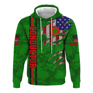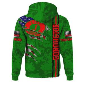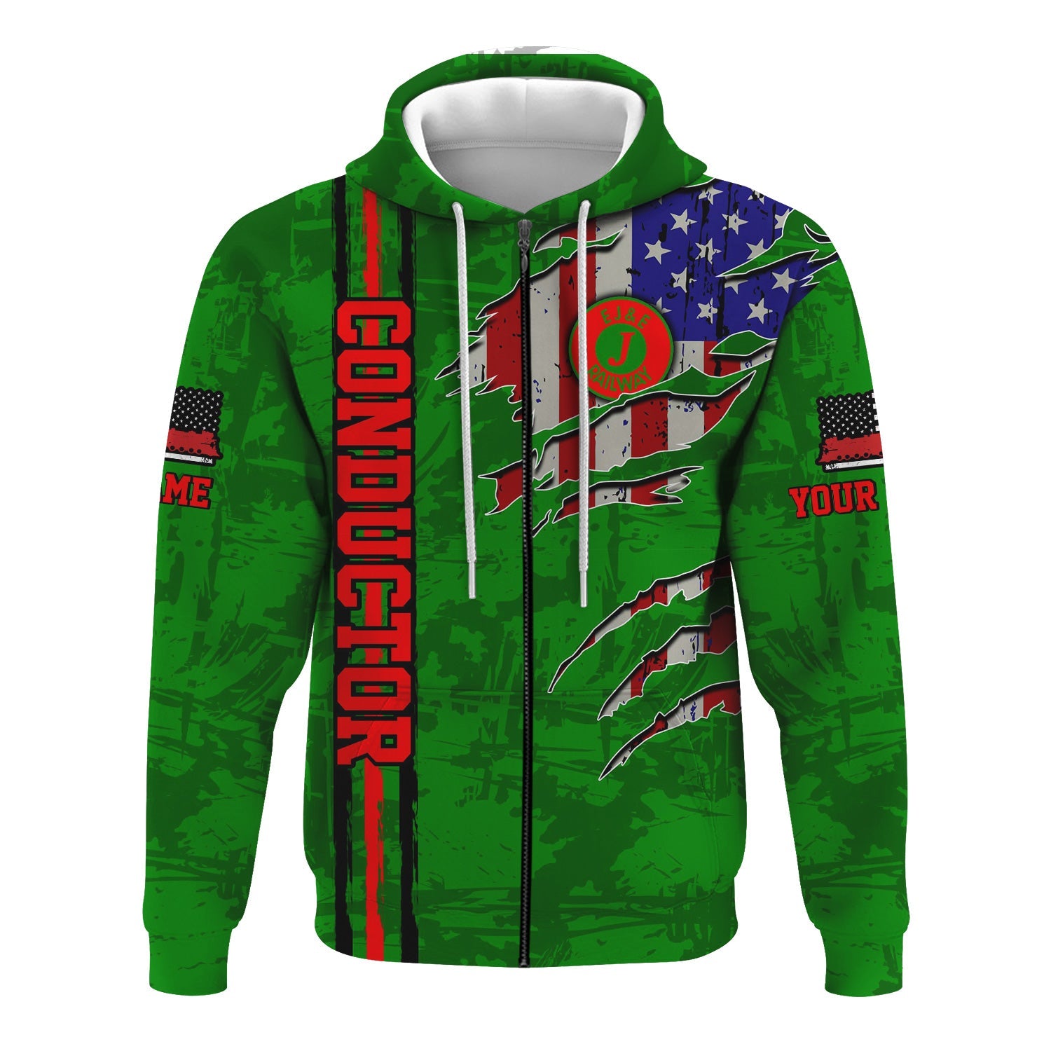 Railspirit Personalized Elgin Joliet And Eastern Railroad Hoodie USA Flag Claw Art with Custom Job Train Zip Up Hoodie