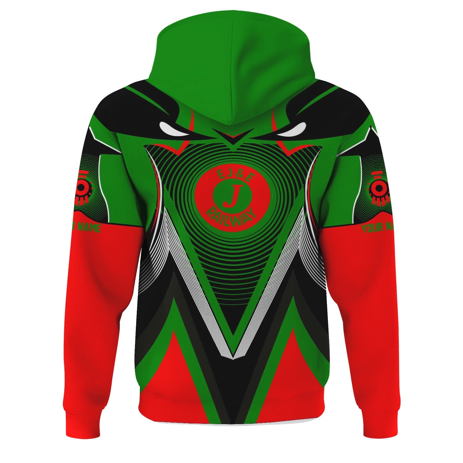 Railspirit Personalized Elgin Joliet And Eastern Railroad Hoodie Vibrant Graphic Pattern Zip Up Hoodie For Train Enthusiasts