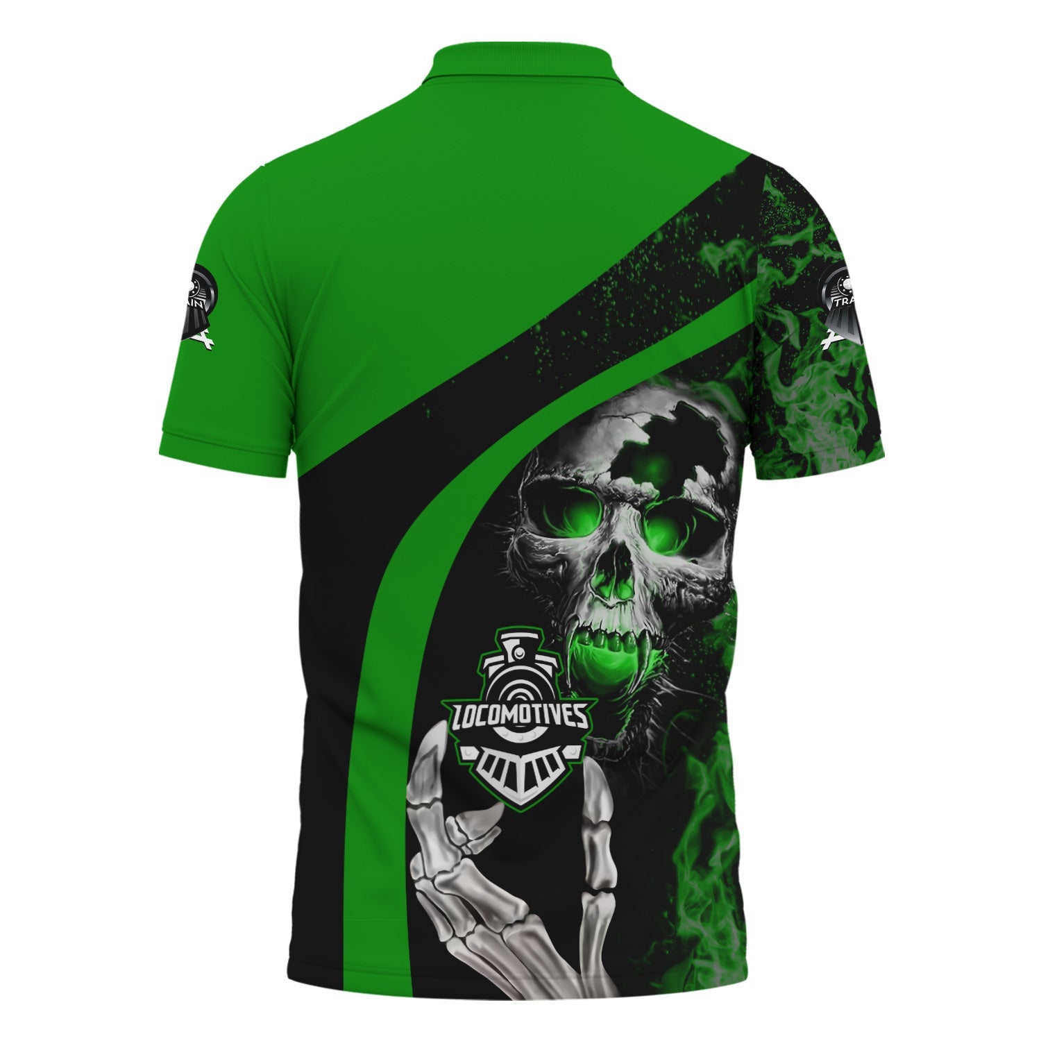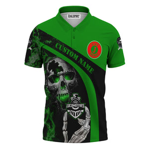 Railspirit Personalized Elgin Joliet And Eastern Railroad Polo Shirt Flame Skull Design Train Shirt for Locomotive Fans