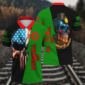 Railspirit Personalized Elgin Joliet And Eastern Railroad Polo Shirt Train Skull American Flag Shirt All Over Print