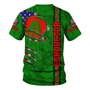 Railspirit Personalized Elgin Joliet And Eastern Railroad T-Shirt USA Flag Claw Art with Custom Job Train Shirt