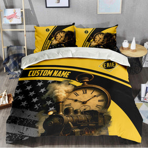 Railspirit Personalized Erie Railroad Bedding Set Classic Steam Engine With Retro Pocket Watch Bedding Set All Over Print