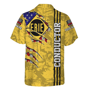 Railspirit Personalized Erie Railroad Hawaiian Shirt USA Flag Claw Art with Custom Job Train Shirt
