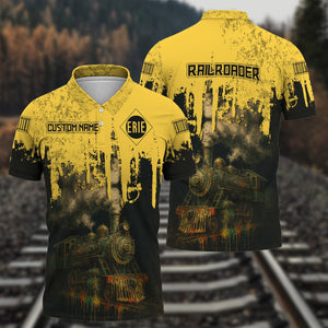 Railspirit Personalized Erie Railroad Polo Shirt Vintage Train Art Style Shirt For Locomotive Fans