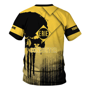 Railspirit Personalized Erie Railroad T-Shirt Skull Design with Custom Job Train Shirt for Trackhead Crew
