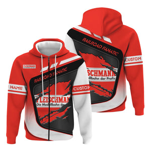 Railspirit Personalized Fleischmann And Western Railroad Hoodie Ripped Texture Style Train Zip Up Hoodie For Railroad Fanatic