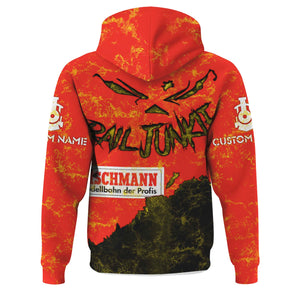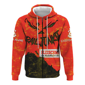 Railspirit Personalized Fleischmann And Western Railroad Hoodie Torn Graphic Style Train Zip Up Hoodie For Rail Junkie
