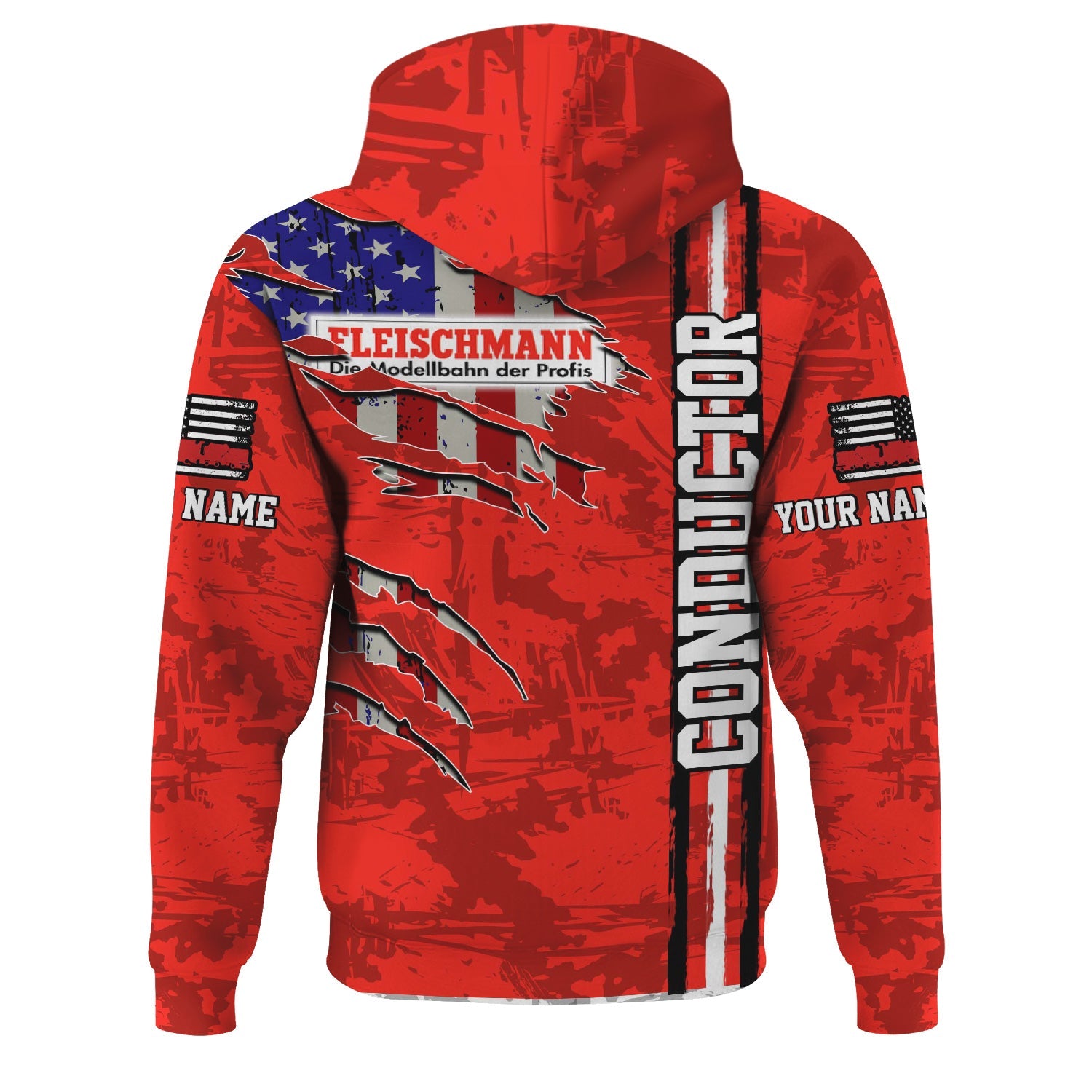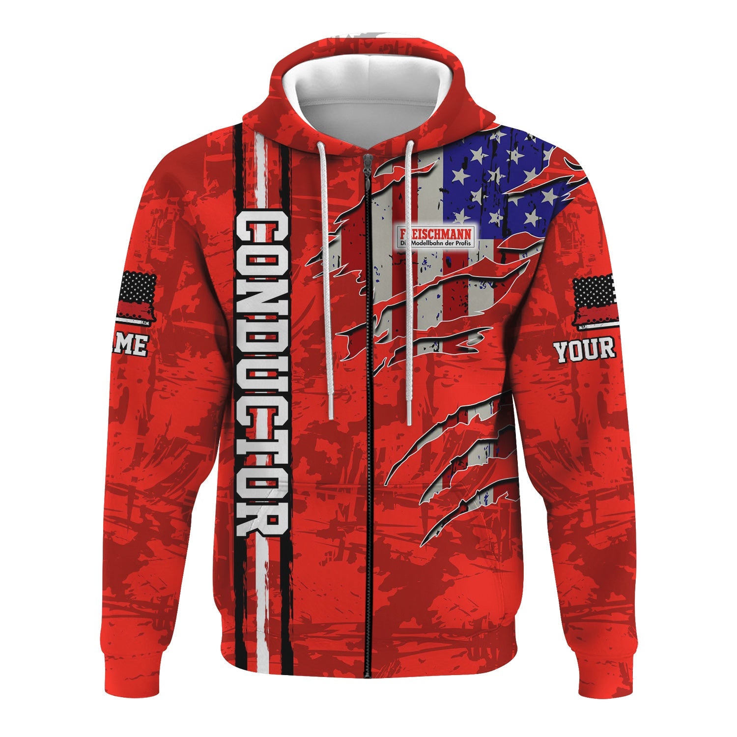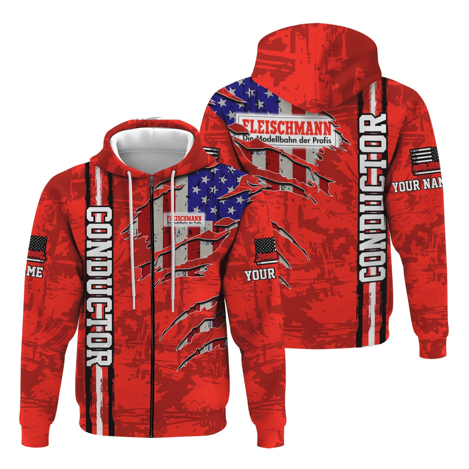 Railspirit Personalized Fleischmann And Western Railroad Hoodie USA Flag Claw Art with Custom Job Train Zip Up Hoodie
