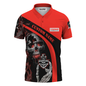 Railspirit Personalized Fleischmann And Western Railroad Polo Shirt Flame Skull Design Train Shirt for Locomotive Fans