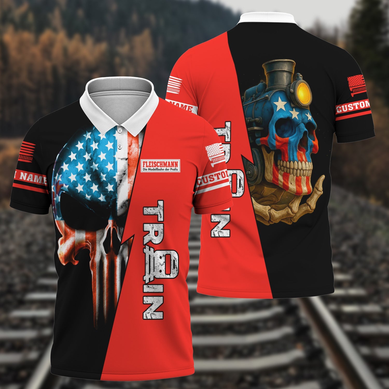 Railspirit Personalized Fleischmann And Western Railroad Polo Shirt Train Skull American Flag Shirt All Over Print