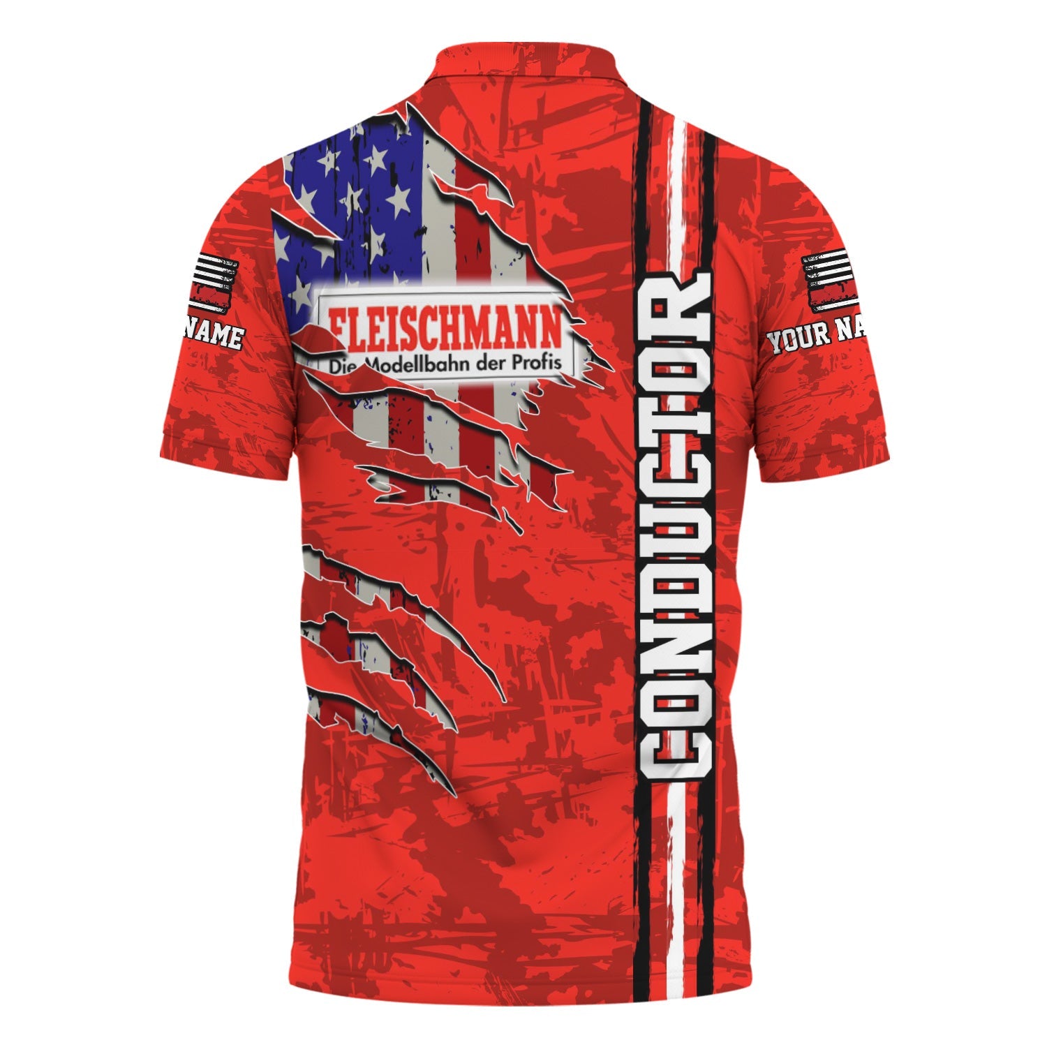 Railspirit Personalized Fleischmann And Western Railroad Polo Shirt USA Flag Claw Art with Custom Job Train Shirt