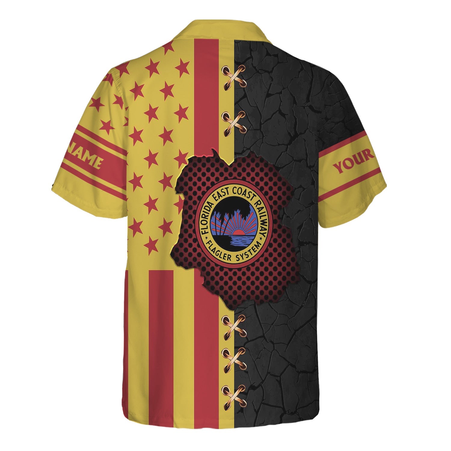 Railspirit Personalized Florida East Coast Railway Hawaiian Shirt American Flag with Crack Effect Train Shirt