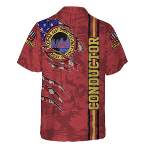 Railspirit Personalized Florida East Coast Railway Hawaiian Shirt USA Flag Claw Art with Custom Job Train Shirt