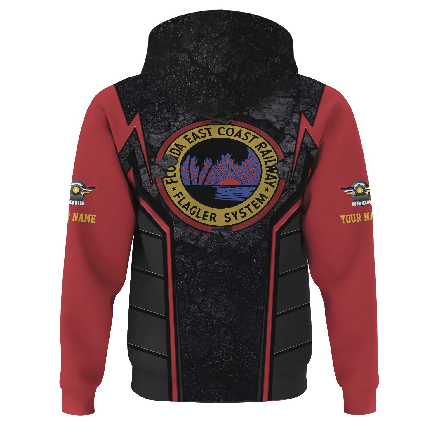 Railspirit Personalized Florida East Coast Railway Hoodie Cracked Metal Design Train Zip Up Hoodie for Rail Enthusiasts