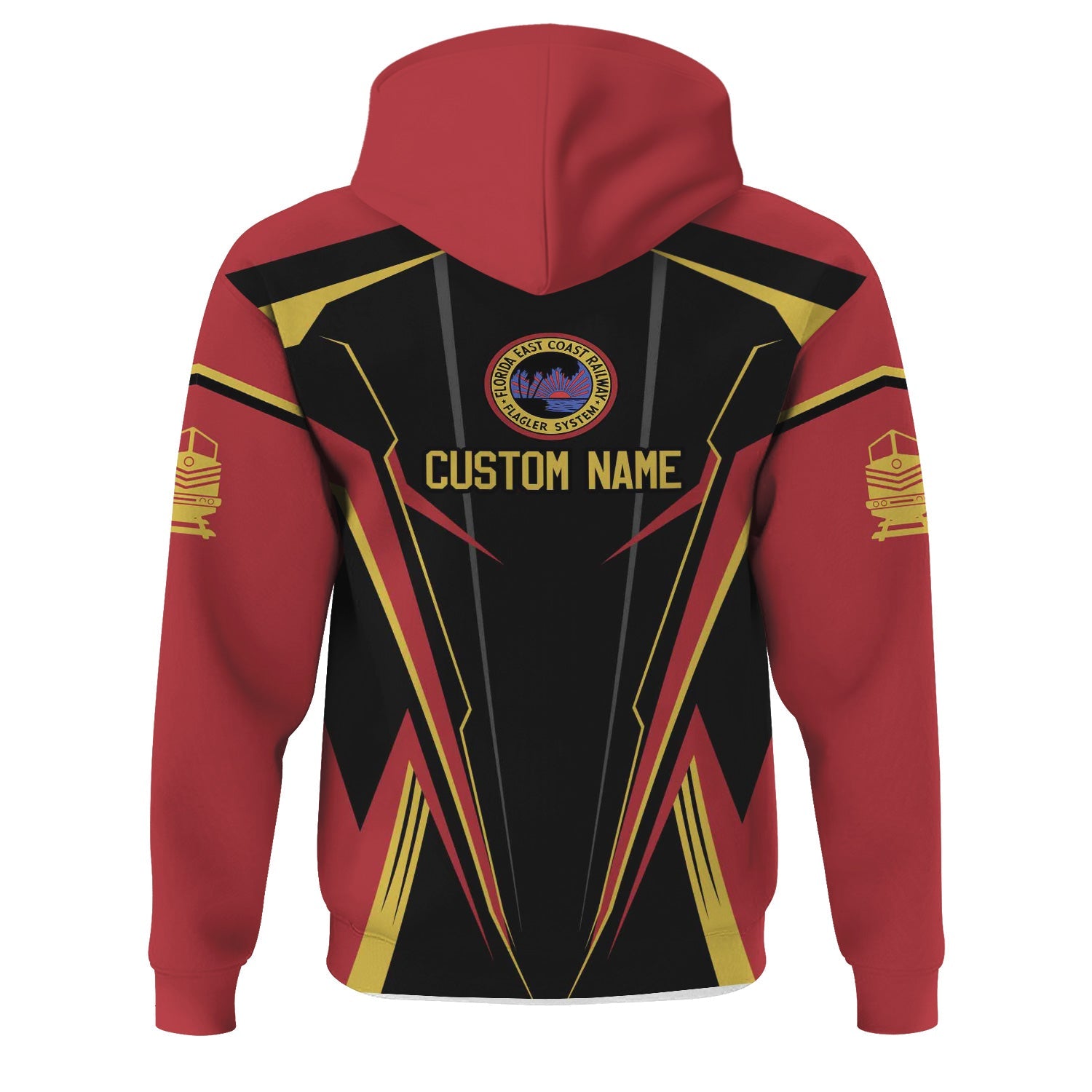 Railspirit Personalized Florida East Coast Railway Hoodie Lightning-Edge Design Train Zip Up Hoodie For Railroad Lovers