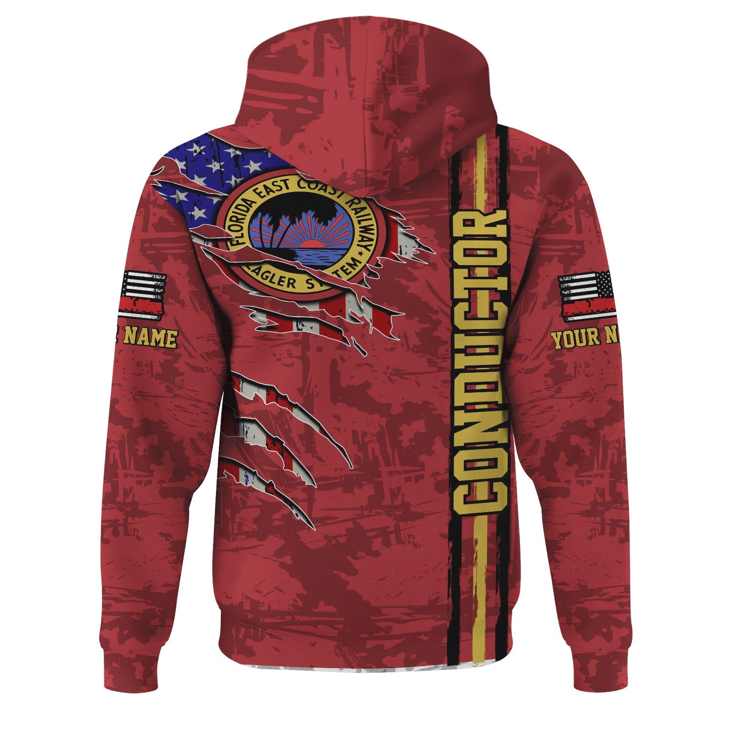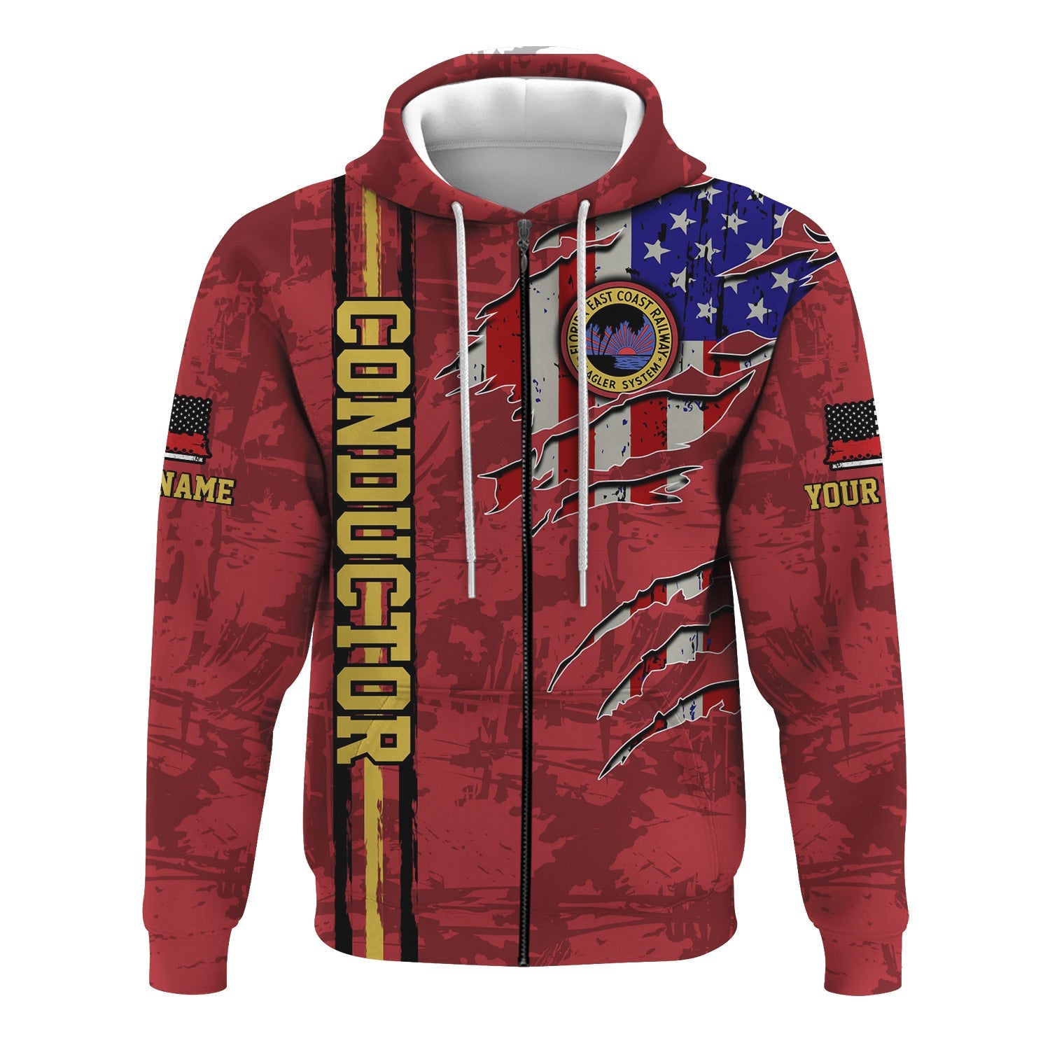 Railspirit Personalized Florida East Coast Railway Hoodie USA Flag Claw Art with Custom Job Train Zip Up Hoodie