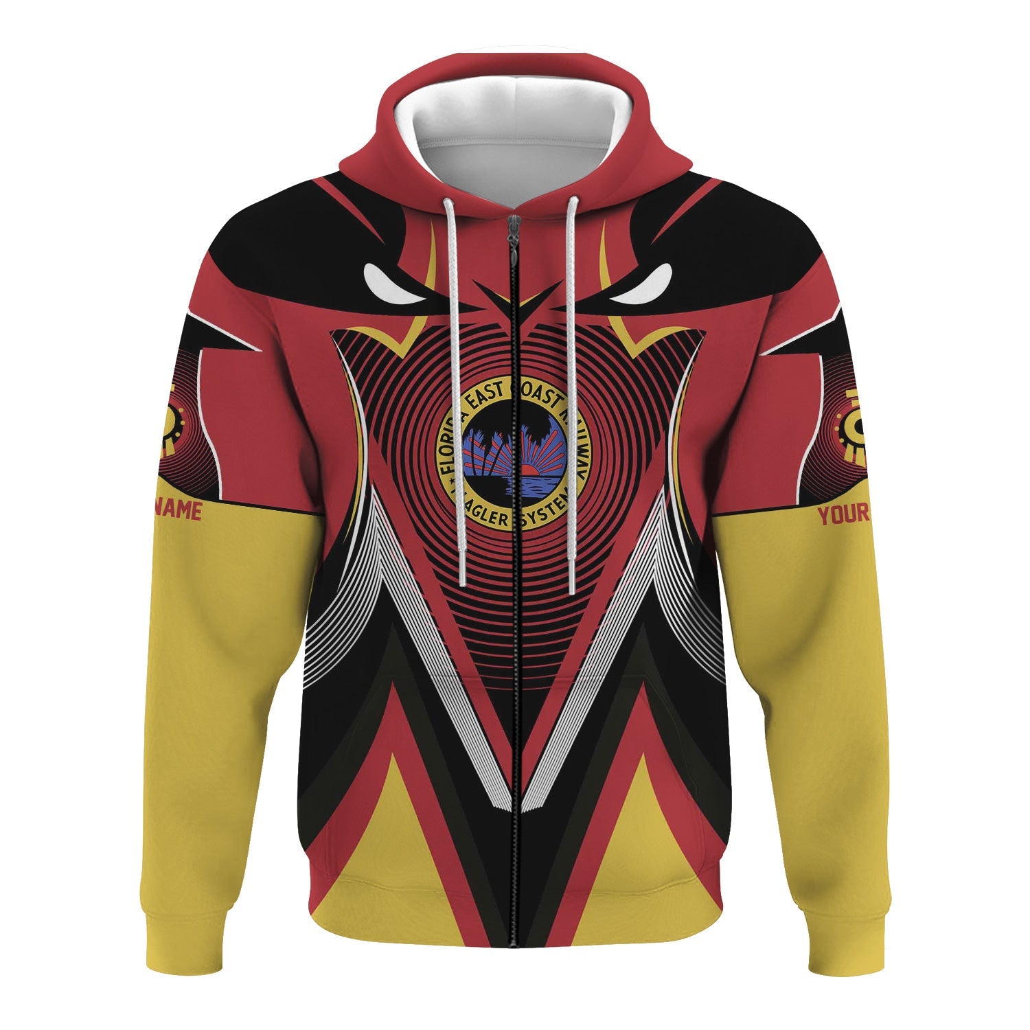 Railspirit Personalized Florida East Coast Railway Hoodie Vibrant Graphic Pattern Zip Up Hoodie For Train Enthusiasts