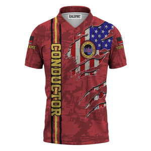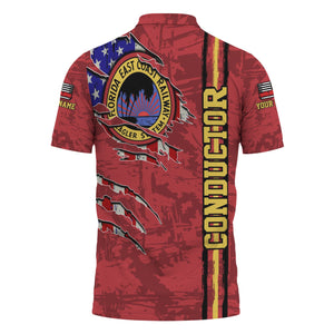 Railspirit Personalized Florida East Coast Railway Polo Shirt USA Flag Claw Art with Custom Job Train Shirt