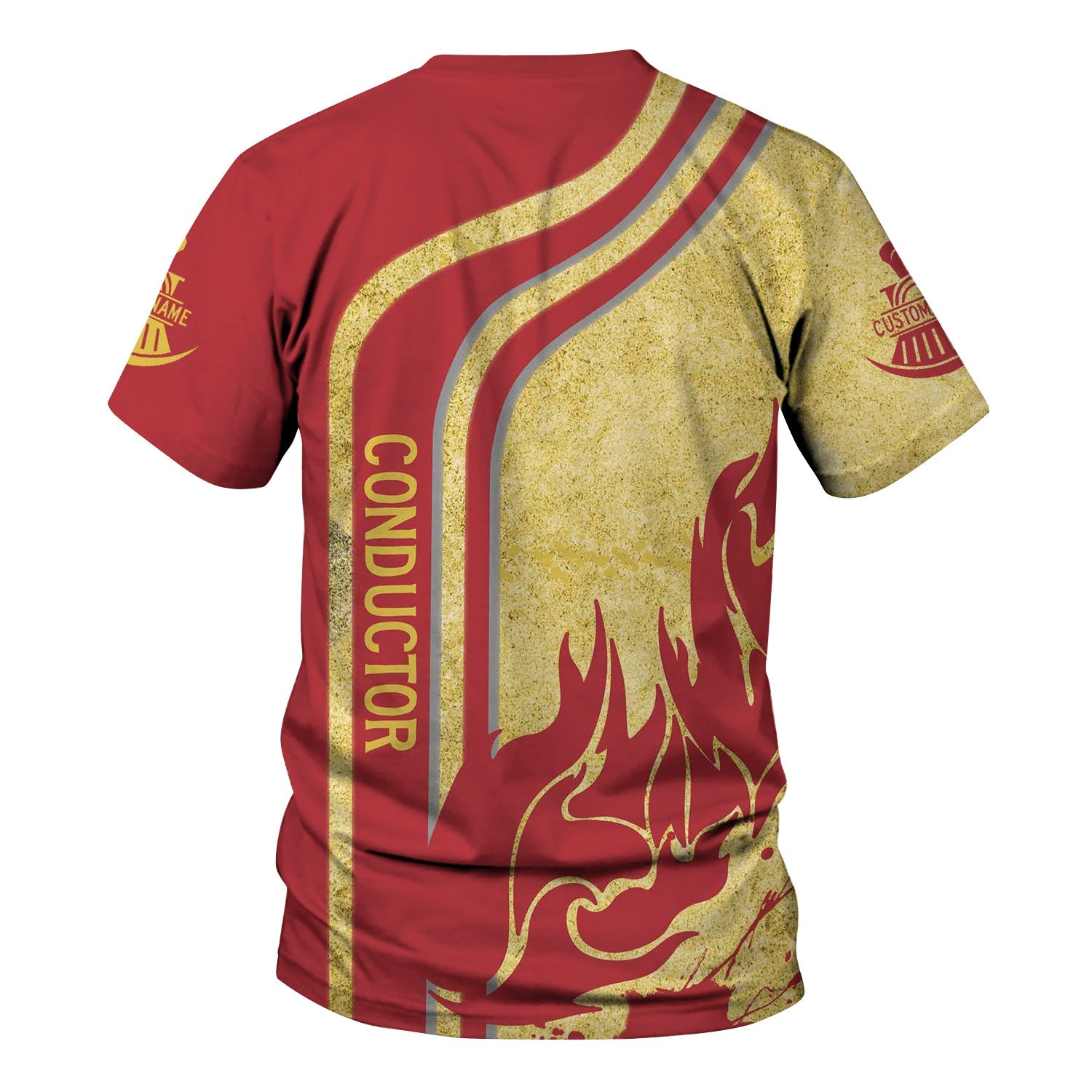 Railspirit Personalized Florida East Coast Railway T-Shirt Flame Design with Custom Job Position Train Shirt