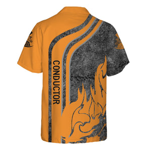 Railspirit Personalized Genesee & Wyoming Inc. Railroad Hawaiian Shirt Flame Design with Custom Job Position Train Shirt