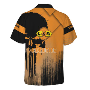 Railspirit Personalized Genesee & Wyoming Inc. Railroad Hawaiian Shirt Skull Design with Custom Job Train Shirt for Trackhead Crew