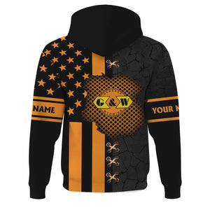 Railspirit Personalized Genesee & Wyoming Inc. Railroad Hoodie American Flag with Crack Effect Train Zip Up Hoodie