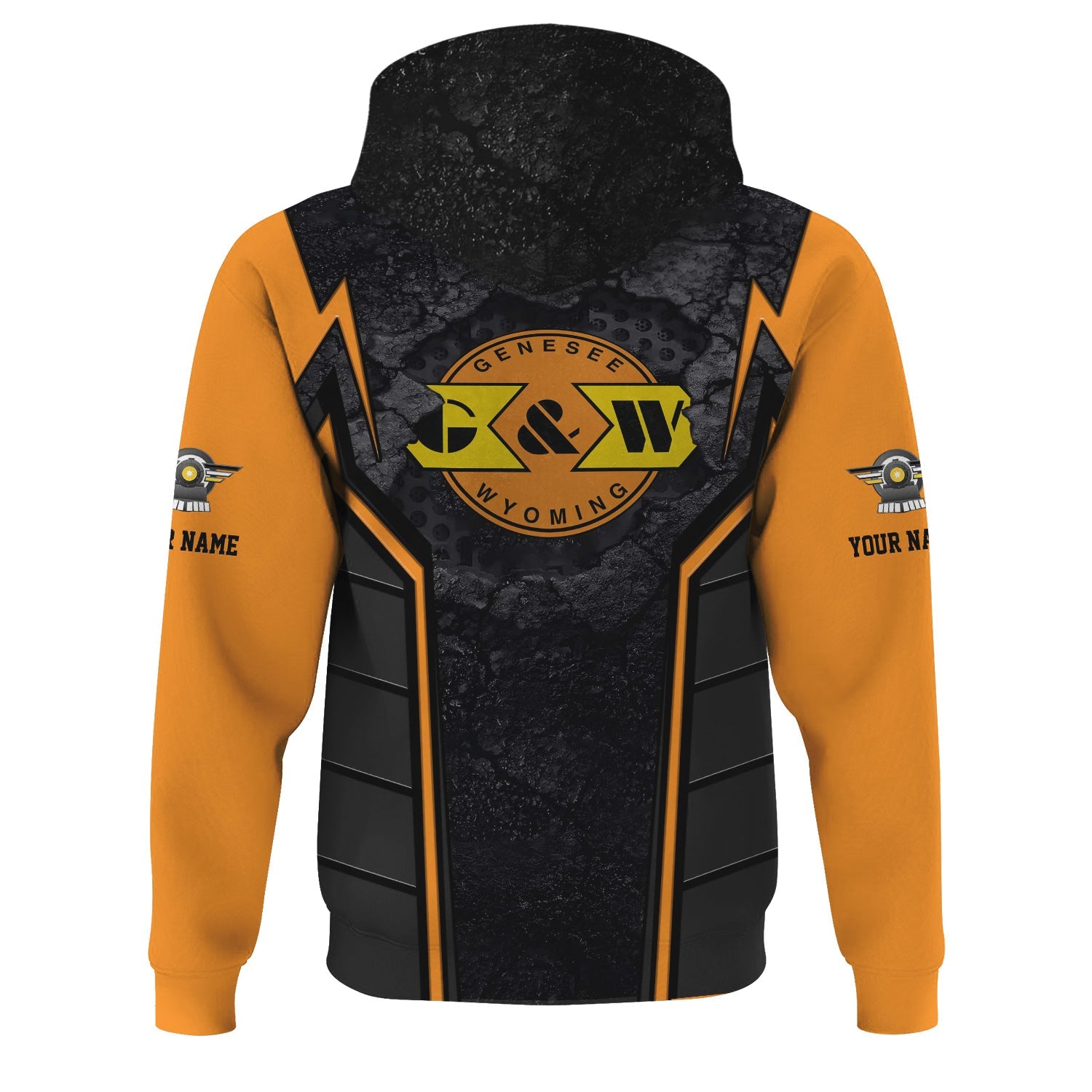Railspirit Personalized Genesee & Wyoming Inc. Railroad Hoodie Cracked Metal Design Train Zip Up Hoodie for Rail Enthusiasts