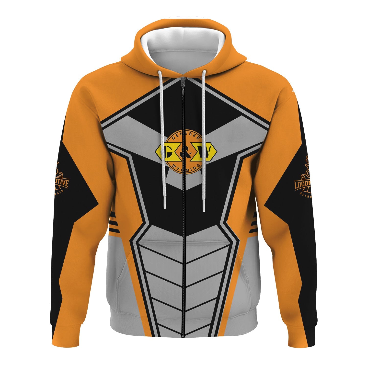 Railspirit Personalized Genesee & Wyoming Inc. Railroad Hoodie Engine-Inspired Style Train Zip Up Hoodie for Railroad Fanatic