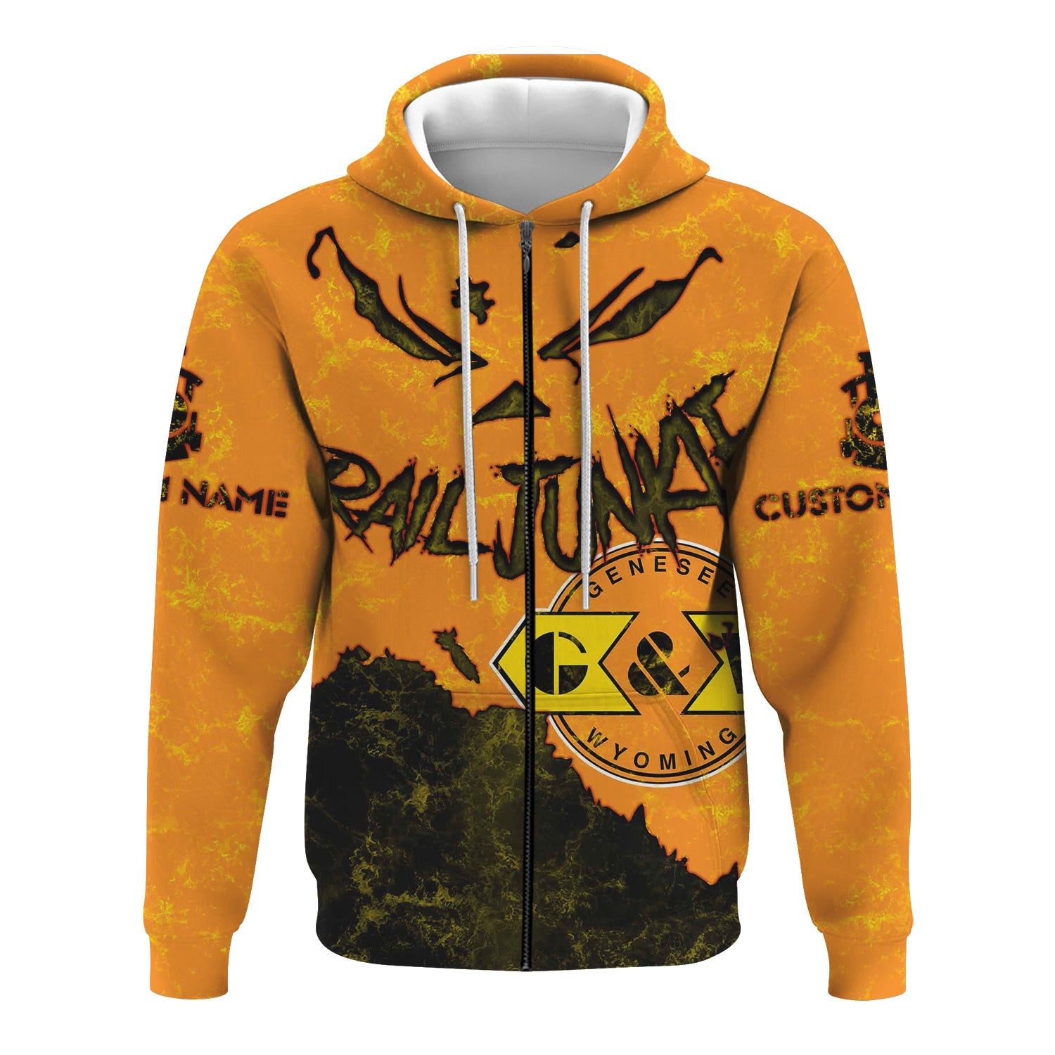 Railspirit Personalized Genesee & Wyoming Inc. Railroad Hoodie Torn Graphic Style Train Zip Up Hoodie For Rail Junkie