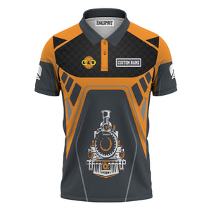 Railspirit Personalized Genesee & Wyoming Inc. Railroad Polo Shirt Steam Locomotive Engine Graphic Train Shirt All Over Print