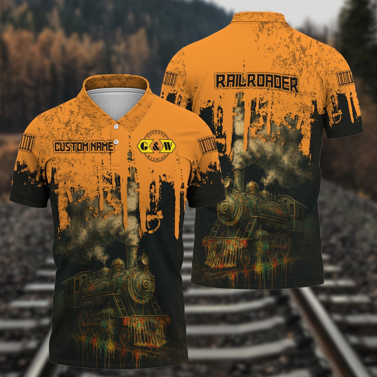 Railspirit Personalized Genesee & Wyoming Inc. Railroad Polo Shirt Vintage Train Art Style Shirt For Locomotive Fans