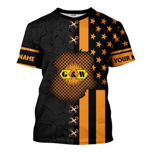 Railspirit Personalized Genesee & Wyoming Inc. Railroad T-Shirt American Flag with Crack Effect Train Shirt