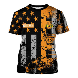 Railspirit Personalized Genesee & Wyoming Inc. Railroad T-Shirt Artistic Paint American Flag Style Train Shirt