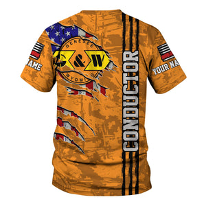 Railspirit Personalized Genesee & Wyoming Inc. Railroad T-Shirt USA Flag Claw Art with Custom Job Train Shirt