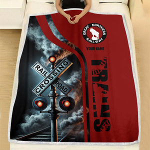 Railspirit Personalized Great Northern Railway Blanket Railroad Crossing Sign GNR Blanket All Over Print