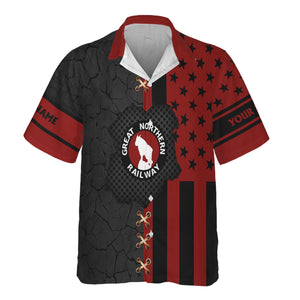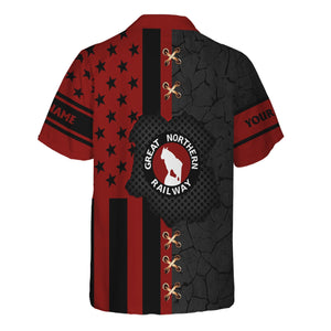 Railspirit Personalized Great Northern Railway Hawaiian Shirt American Flag with Crack Effect GNR Train Shirt