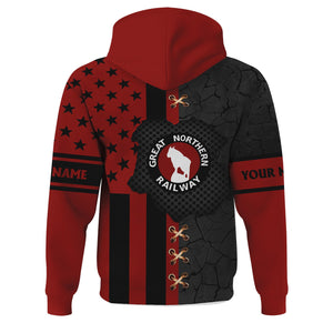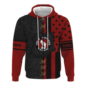 Railspirit Personalized Great Northern Railway Hoodie American Flag with Crack Effect GNR Train Zip Up Hoodie