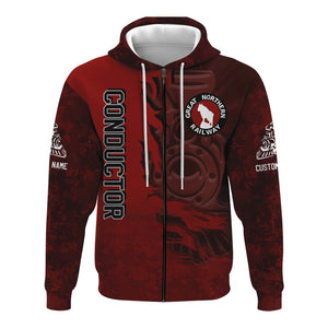 Railspirit Personalized Great Northern Railway Hoodie Blazing Style with Custom Position GNR Train Zip Up Hoodie